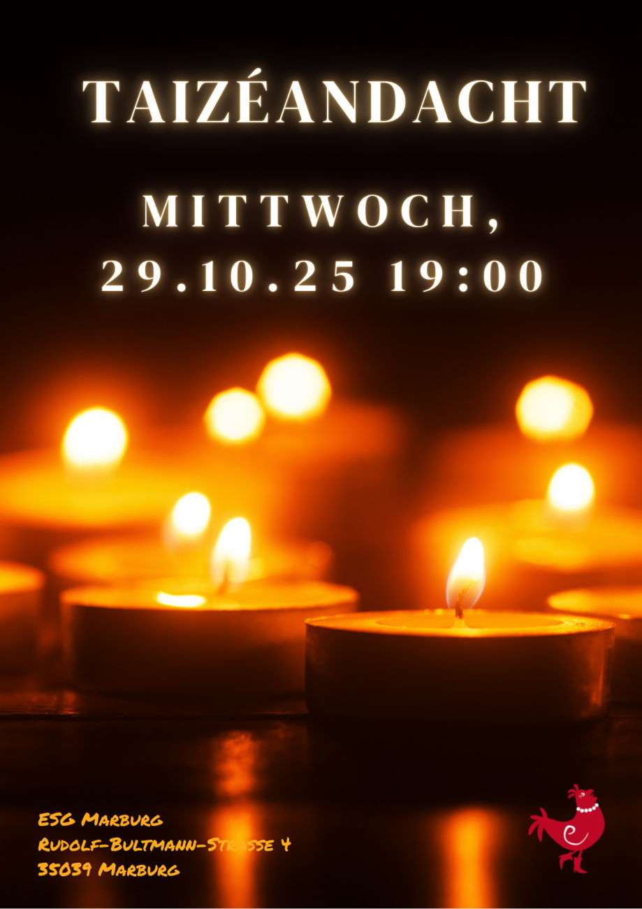 Wir verschicken jede Woche einen Newsletter (als E-Mail) mit aktuellen Veranstaltungshinweisen von der ESG Marburg oder auch darüber hinaus.