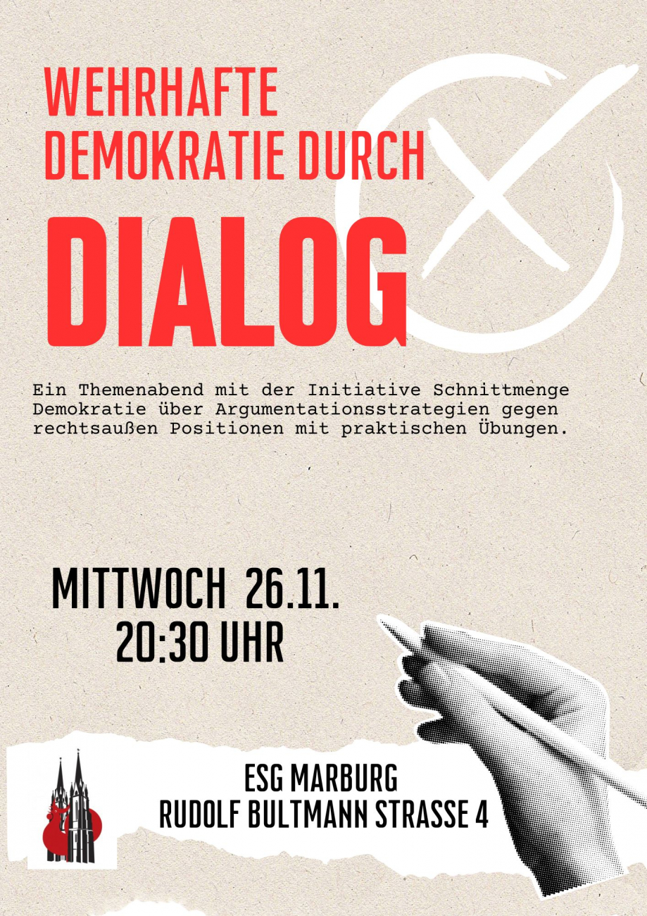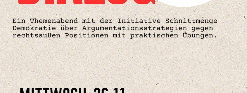 Ein Themenabend mit der Initiative Schnittmenge Demokratie über Argumentationsstrategien gegen rechtsaußen Positionen mit praktischen Übungen.