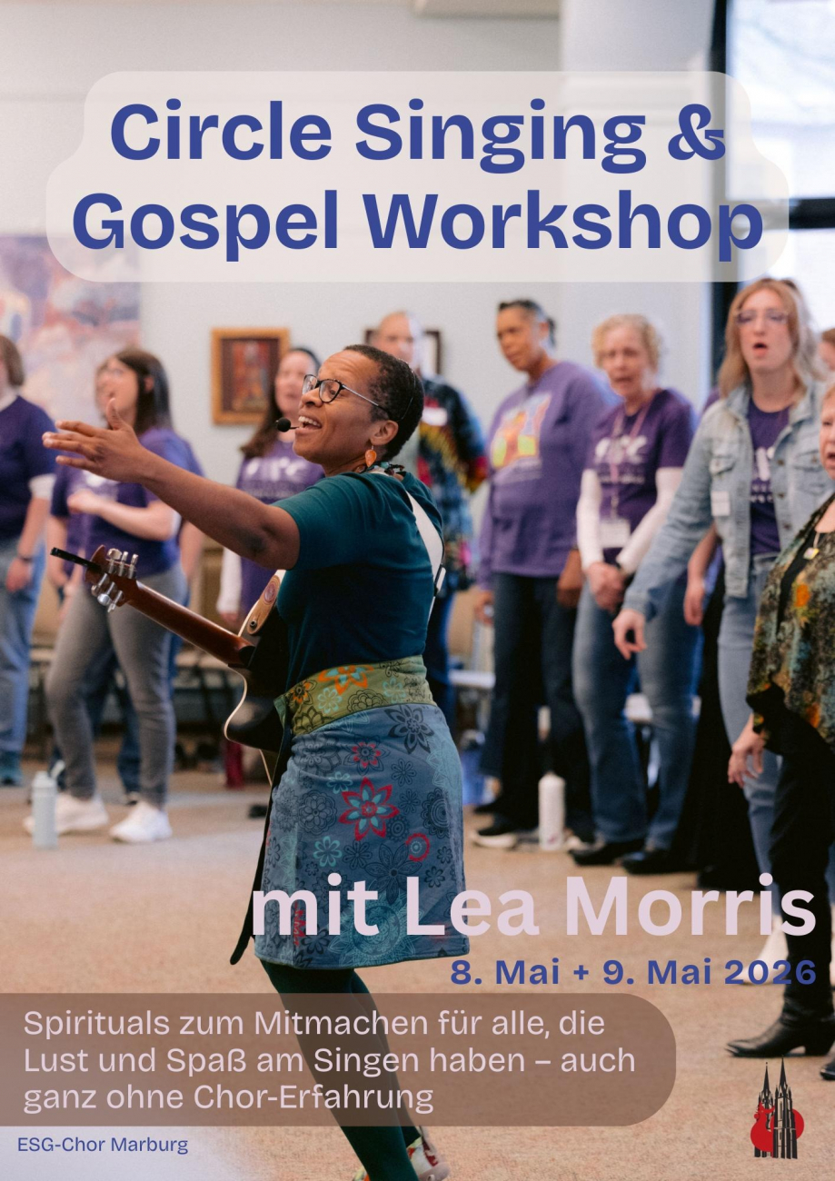 Samstag, 10-18 Uhr: Zusammen singen wir traditionelle Spirituals und ausgewählte Songs von Lea Morris und tauchen dabei in ihre historischen und kulturellen Wurzeln ein. Wir erfahren, wie Menschen in Versklavung als Ausdruck von Hoffnung, Zusammenhalt und Widerstand diese Musik erschaffen haben, und wie viel Kraft, Emotion und Gemeinschaft in den Liedern steckt. Ort: Hans von Soden Haus, Rudolf Bultmann Straße 4, 35039 Marburg